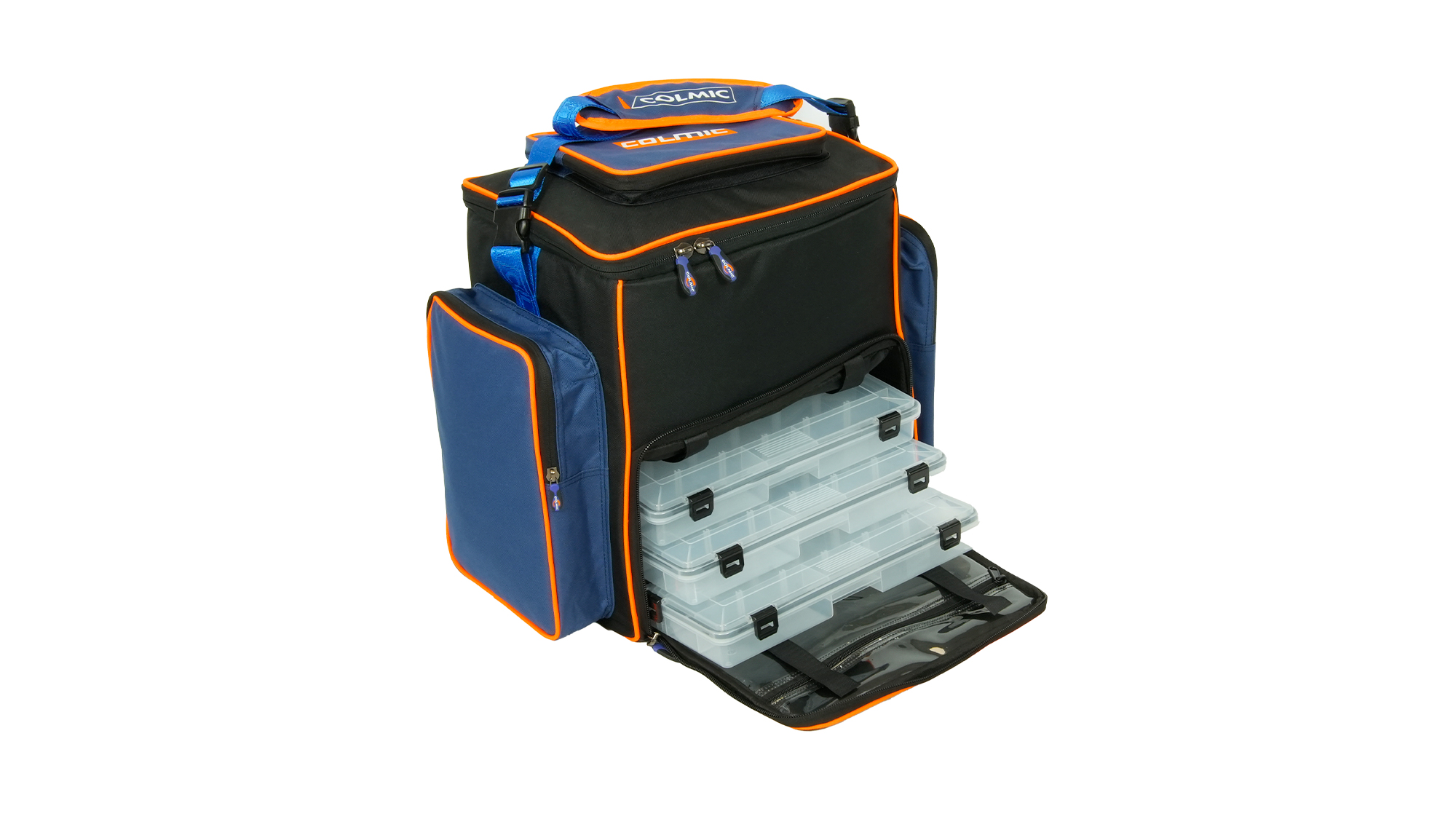 1 grande vano superiore a vasca per mulinelli, bobine e accessori vari. Il vano è diviso al suo interno da una paratia amovibile in poliestere imbottito.
