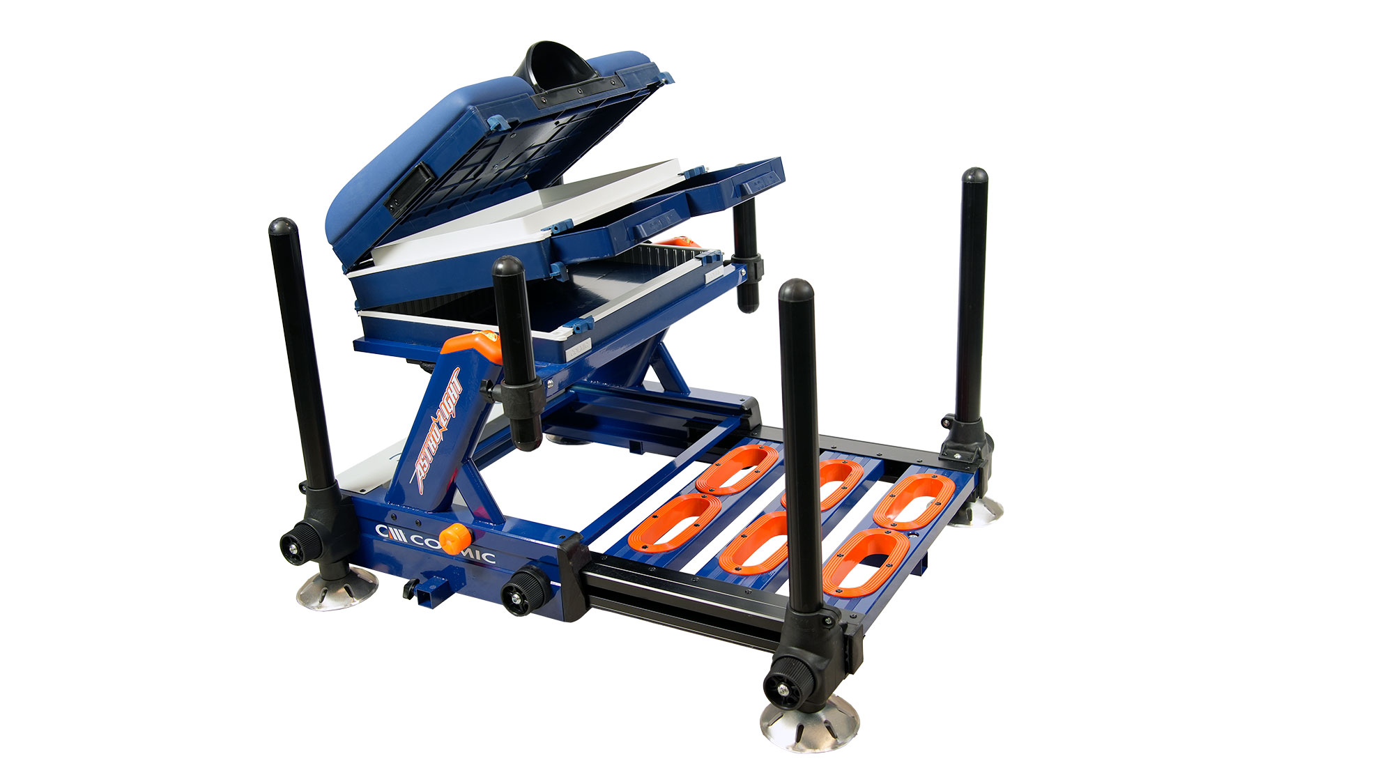 Astro Light is the ideal solution for those seeking high performance in a compact and ultra-lightweight format. Its frame is designed to ensure maximum manoeuvrability without compromising stability. Equipped with reinforced side clamps, perforated aluminium feet, a 3-level levelling system and an ergonomic foam seat, it ensures precision, comfort and practicality in all conditions.