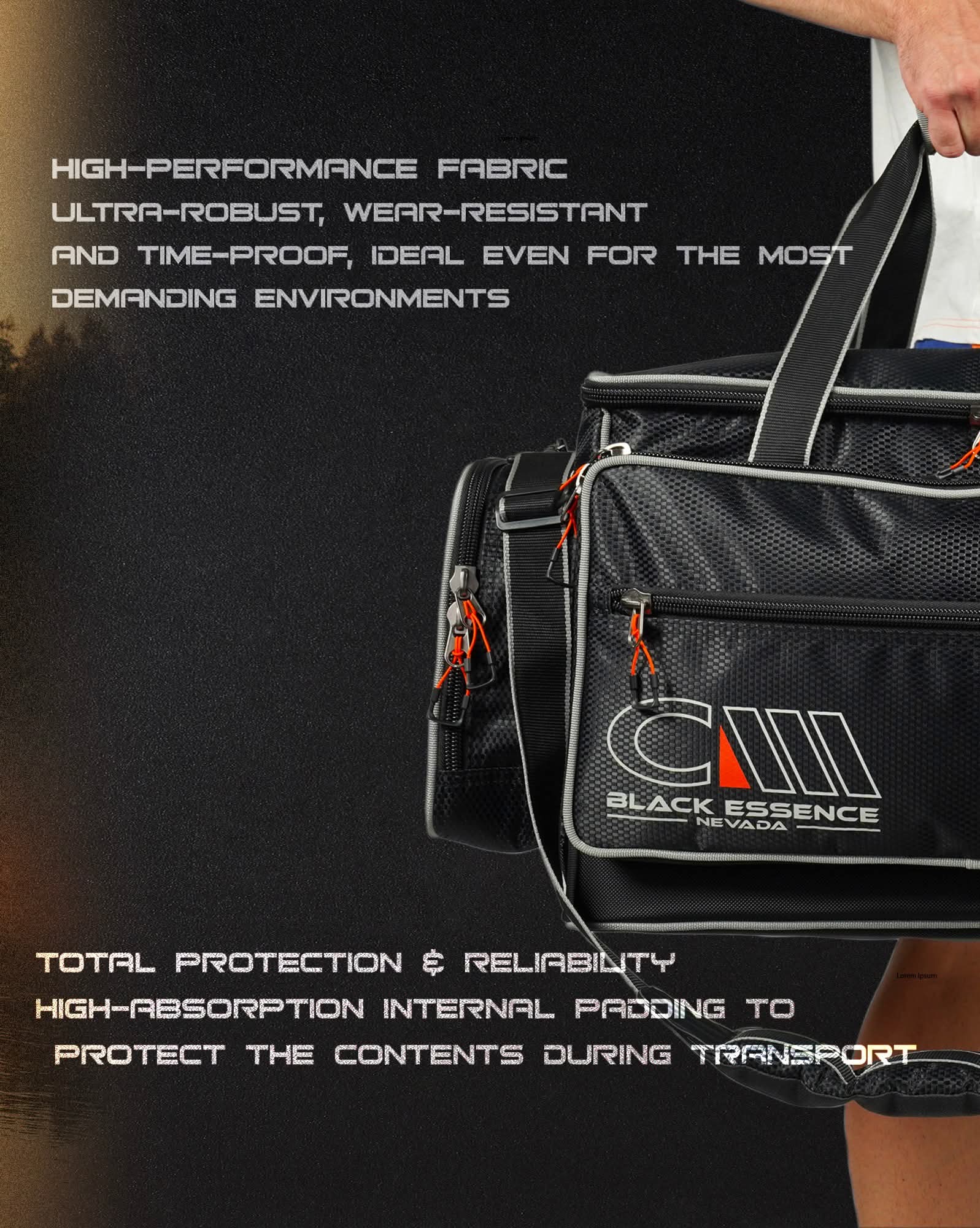 NEVADA is part of the BLACK ESSENCE line, the luggage and case collection designed with next-generation materials and finishes. Designed for those seeking the same practicality and quality as the FLORIDA model, but in a more compact format, it offers functionality, organization, and durability in a smaller duffel bag.